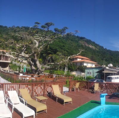 Lugar muito aberto, com vista para o morro e próximo à praia.